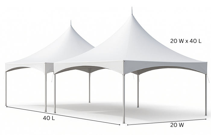- Elegant 20x40 High Peak Tension Tent: ideal for weddings & formal events