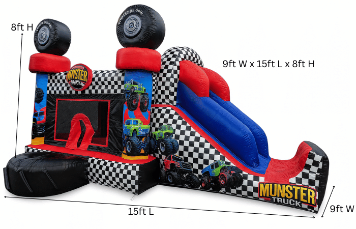The Mini Monster Truck turns any event into an unforgettable adventure! Kids can enjoy the thrill of their very own monster truck ride, sparking imagination and excitement. Perfect for birthday parties and small gatherings, this Inflatable Bounce House Mini Monster Truck rental delivers safe, high-energy fun that keeps everyone entertained. Get ready for roaring engines and endless smiles with this action-packed party ride!